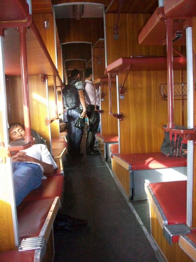 В темноте возвращаюсь на вокзал. При отправлении я был единственным пассажиром общего вагона. Проводник, молодой казах, обратился ко мне с просьбой проверить и подкорректировать его переписку на телефоне с русскоязычной девушкой. Он не хотел отправлять ей сообщение из-за возможных ошибок.