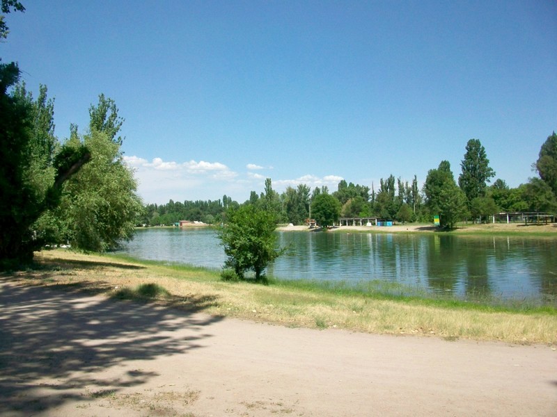 Поезд на Алма-Ату отправится поздно, в темноте. Остаток дня можно уделить осмотру Талды-Кургана. Иду на окраину города, где есть искусственное озеро.