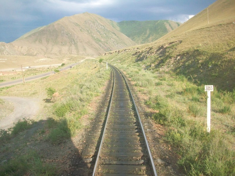 Станция Карабулак, долгая стоянка со сменой направления движения. Потом сплю, просыпаюсь дождливым и хмурым утром перед станцией Жоламан.