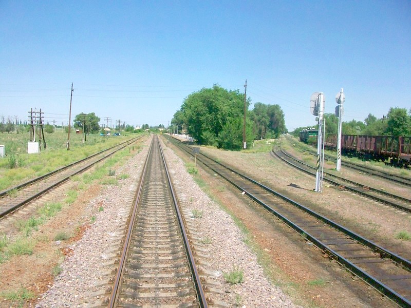 Станция Коксу. Вид в северном направлении. Вправо — линия в сторону Талды-Кургана,