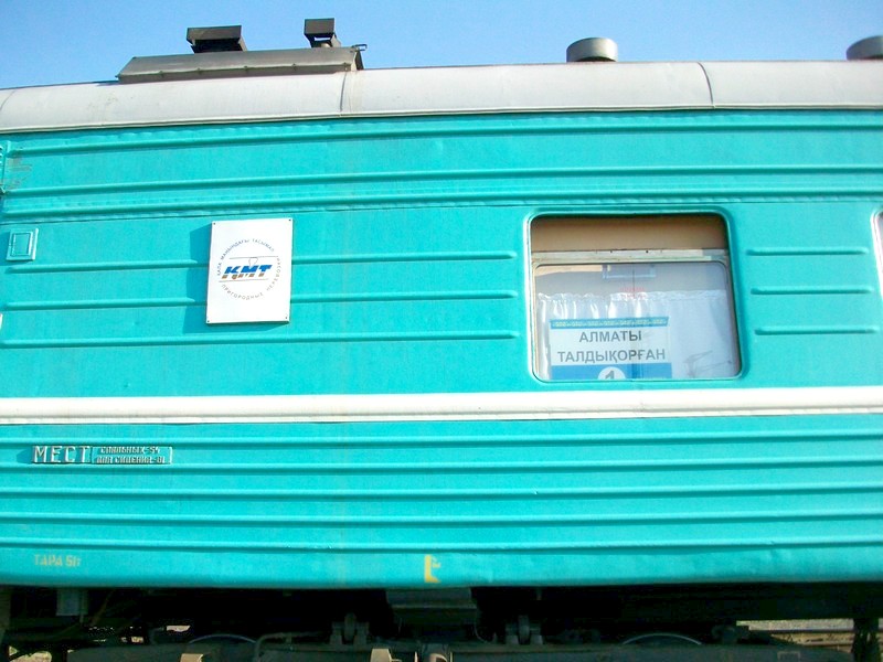 Вагон пассажирского поезда с новым и пока удивительно выглядящим маршрутом: Алма-Ата — Талды-Курган.