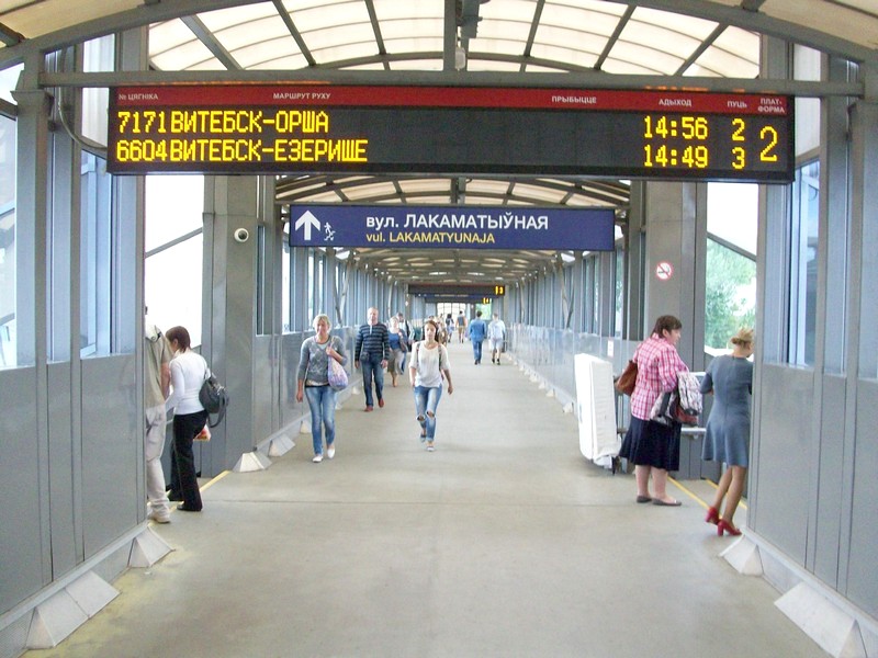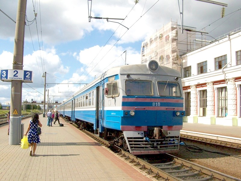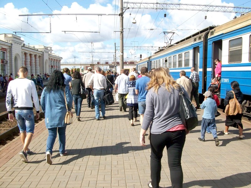Станция Великие Луки. Производится посадка на пригородный поезд сообщением Великие Луки — Нелидово. Время 10:05.