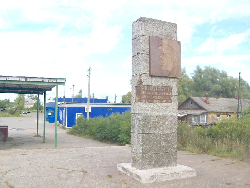 Станция Оленино. Памятный знак: «Владимир Ильич Ленин в августе 1920 года