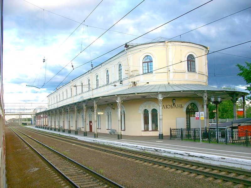 Вокзал на станции Любань (московский «зеркальный» аналог — Клин). Время 21:10.