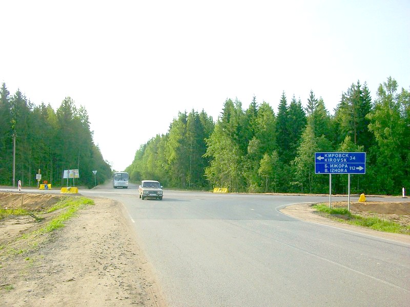 На подходе к посёлку Гладкое. Пересечение автодороги Саблино — Гладкое с