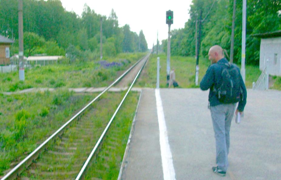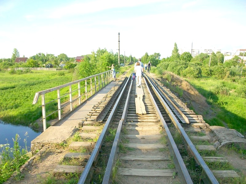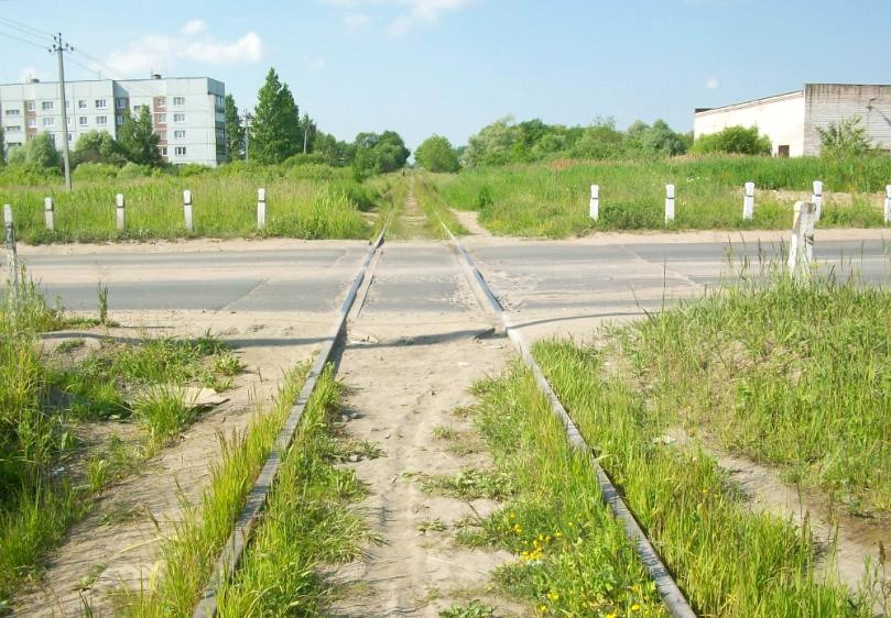 Вначале направляюсь по железной дороге в сторону Старой Руссы. Первые семь километров железнодорожной линии Новгород — Старая Русса сохранились. Это путь к промышленным предприятиям и воинской части, с редким грузовым движением. Дальше линия разобрана.