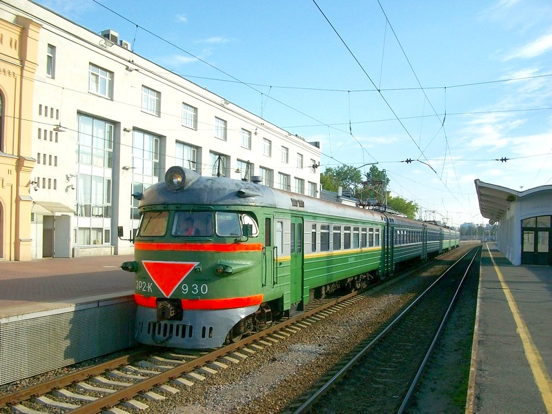 Редкий для 2015 года «круглый» состав ЭР2К-930 на Финляндском вокзале. Время 7:28.