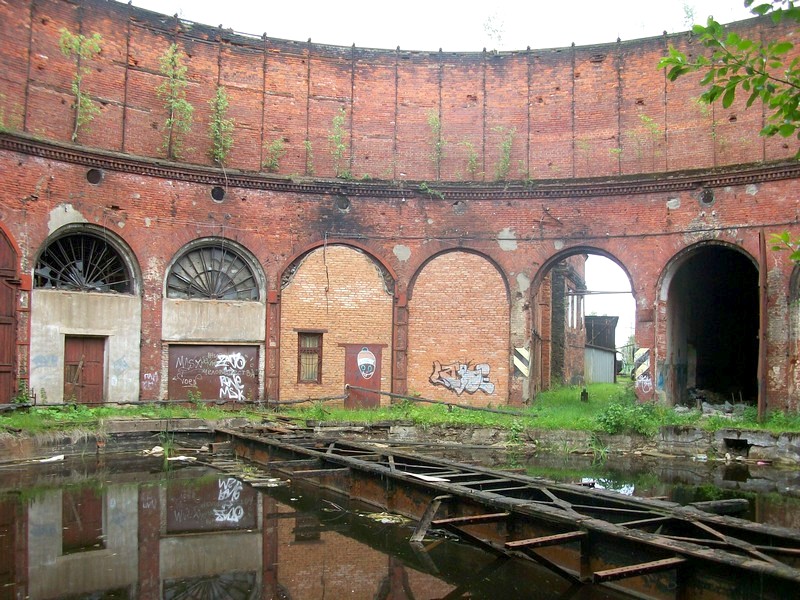 Малая Вишера. Заброшенное старинное веерное депо. Время 19:49.