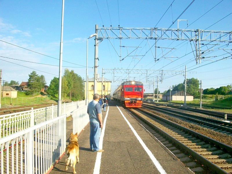 Электропоезд Бологое — Окуловка. Станция Лыкошино, выделяющаяся