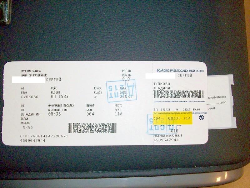 Посадочный талон. У владимирского аэропорта нет даже привычного кода ИАТА из трёх латинских букв!