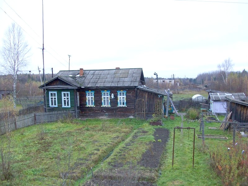 Посёлок Молочное. Деревянный жилой дом, заметно отличающийся от примитивных унылых бараков.