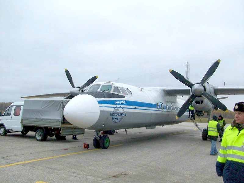 Самолёт АН-24. Такой же, как при перелёте в 2013 году из Пскова в Пулково http://infojd.ru/dop/poezdka2013budneb.html. Та же самая авиакомпания «Псковавиа». Цена в несколько раз выше, чем тогда — впрочем, и расстояние тоже.