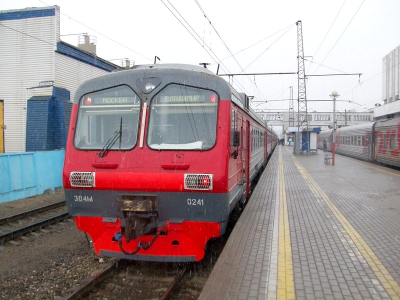 От станции Владимир — электропоездом на Москву-Курскую. К сожалению, отвратительная «бичевозка», приходится терпеть. Вдвойне удивительно, что этот поезд изначально был построен в нормальном, комфортном исполнении, но затем был переоборудован под «дрянь 4-го класса».