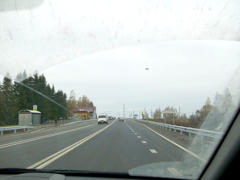 Движение по автодороге Вологда — Вытегра. Впереди — село Кашкалино.