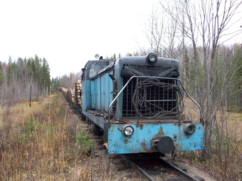 Тепловоз ТУ7А-3329 на узкоколейной железной дороге. Тепловоз — один из последних, 1994 года постройки.