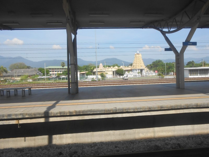 Промежуточные стоянки поездов в Малайзии короткие. Но я всё же выбежал в город и сфотографировал вокзал с восточной стороны. Бегом возвращаюсь к поезду сквозь перронный контроль.