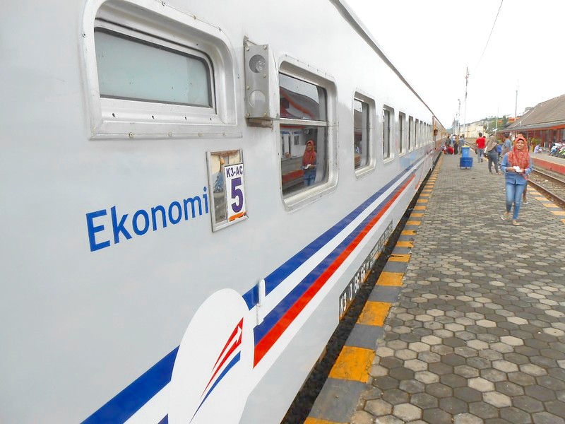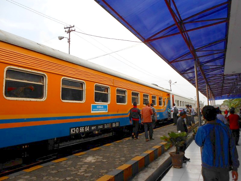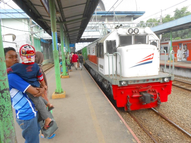 Вот и первый поезд Kereta Api Indonesia — Государственной железной дороги Индонезии. Им оказался японский электропоезд. Наверняка не новый, прибывший сюда после многих лет работы в каком-то из японских мегаполисов.