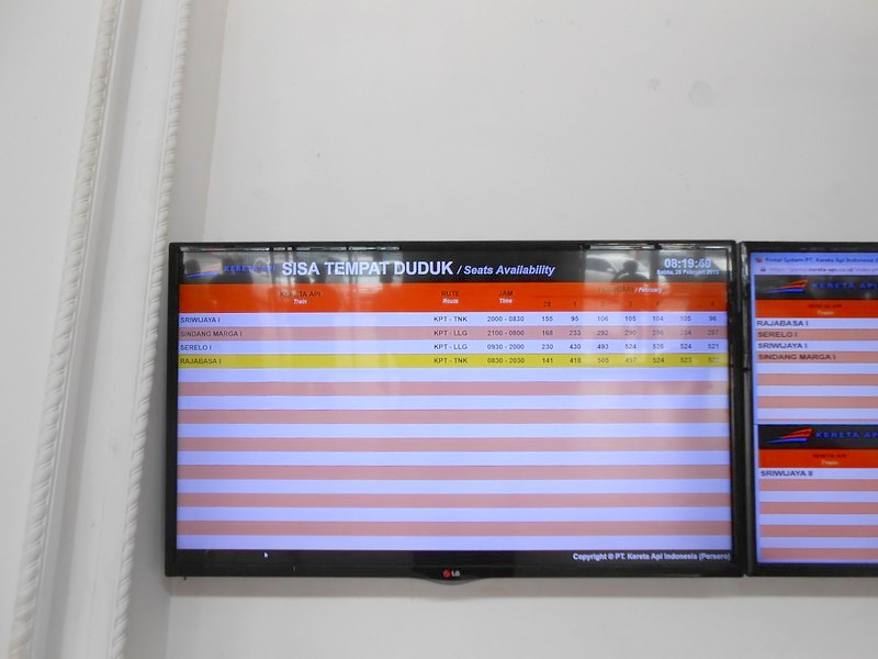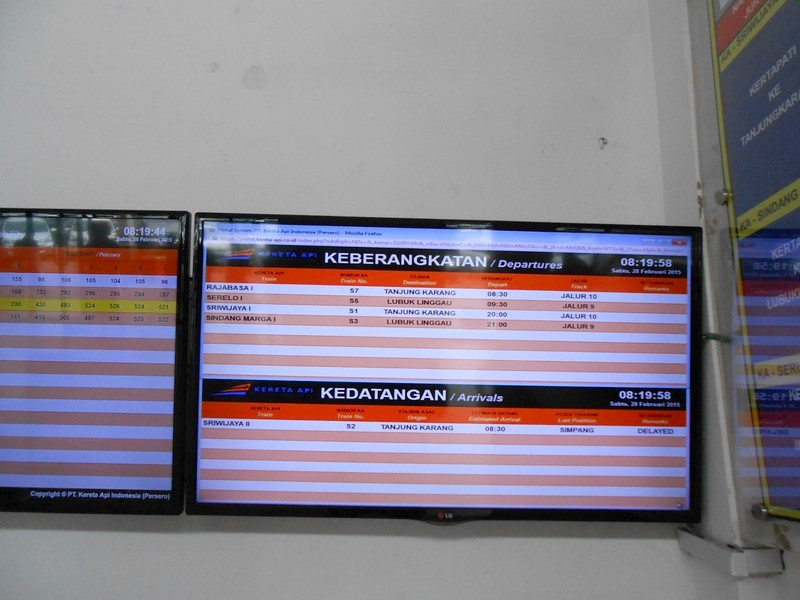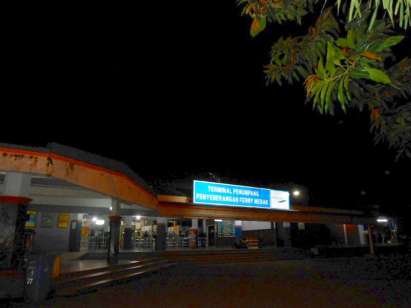 Здание вокзала — современной постройки, «нависает» над путями. В расписании разобраться непросто. Но упомянутого в своё время Антоном Кротовым поезда на Merak (порт напротив Суматры) в 13:10 не оказалось. Поезд до Мерака будет только около 18 часов, уже в темноте.