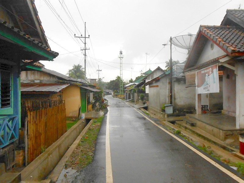Этот участок, от города до паромного причала — худшая часть поездки по Индонезии. Индонезийские дороги ужасны! Узкая двухполосная трасса, извилистая и «прыгающая» вверх-вниз (местность низкогорная), почти всюду окружённая населёнными пунктами, и при этом с непрерывным потоком транспорта, в основном грузового. Ведь это основная «нить» связи Суматры с 50-миллионным населением и Явы со 150-миллионным населением.