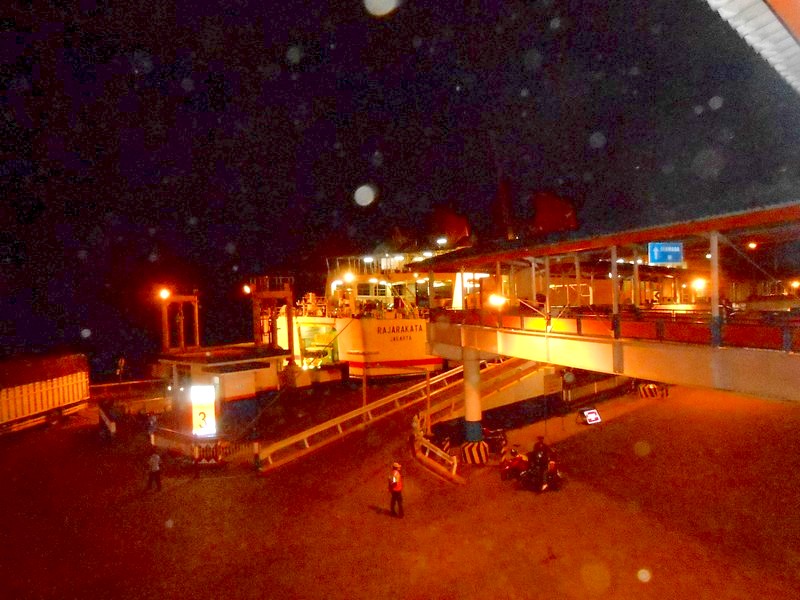 Примерно в 23:40 теплоход «Rajarakata» отходит в сторону яванского берега. Впереди — почти три часа среди ночного моря.