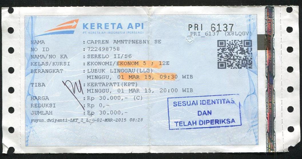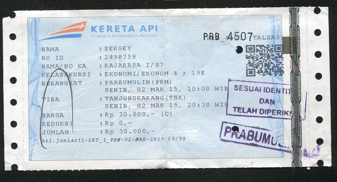 Билет Прабумулих — Танджунг Каранг (город Бандар Лампунг).