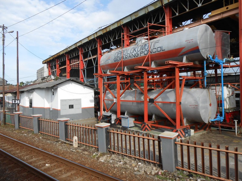 Территория депо на станции Semarang Poncol. Время 15:49.