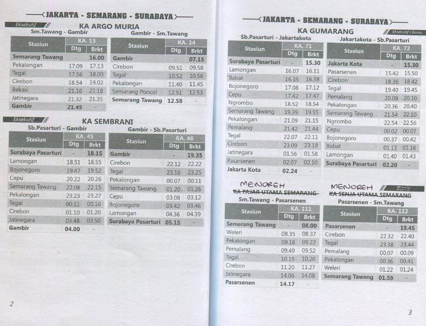 Расписание движения поездов дальнего следования Железной дороги Индонезии.
