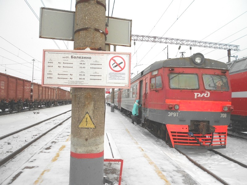 Станция Яр. Прибывает электропоезд ЭР9Т-708 сообщением Глазов — Киров.
