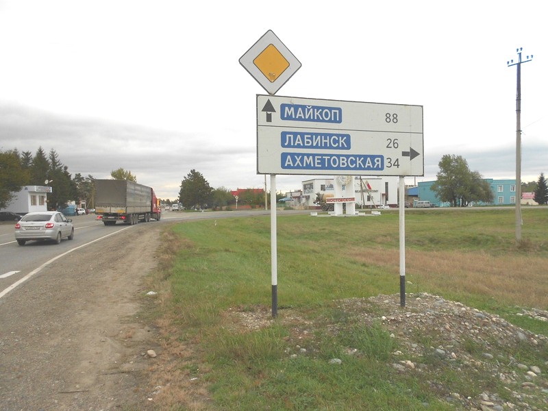 Курганная. Налево Армавир, направо Шедок.
