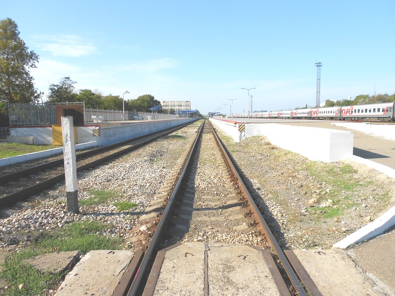 На станции Анапа — высокие платформы. Вид со стороны тупика в северном направлении.