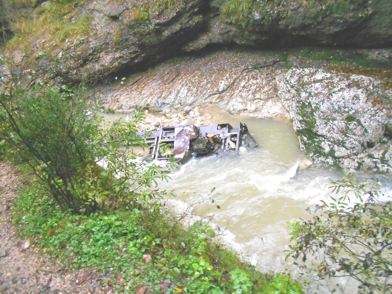 Тепловоз, упавший в реку Курджипс. По данным Александра Куделя, это произошло 23 февраля 2003 года, погибших не было.