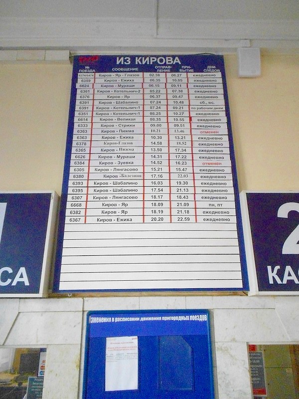 Расписание движения пригородных поездов по станции Киров. Сократилось, но по сравнению