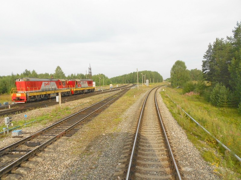Обратно с разбиральщиками. Один "забур" платформы. Два раза обгоняем на разъездах поезда с лесом, у которых скорость меньше.