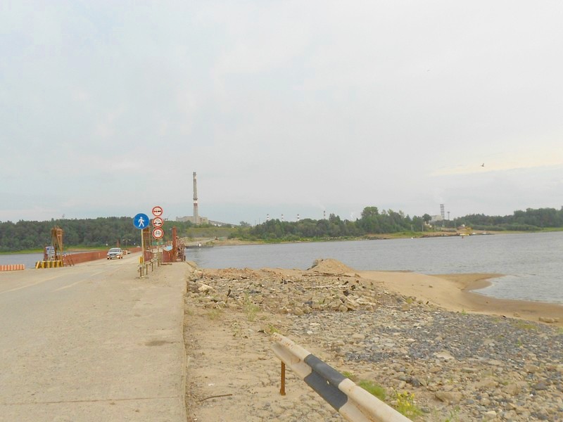Как понтонный мост совместим с судоходством? Никак, но и судоходства тут нет. Вычегда кажется огромной рекой. Но местные жители уверяют, что Вычегду можно в некоторых местах перейти вброд. Впрочем, в редчайшие дни суда появляются, и тогда мост размыкают.