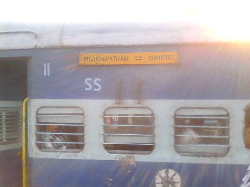 Маршрутная доска на одном из вагонов поезда Висакхапатнам — Гунупур выполнена на четырёх языках.