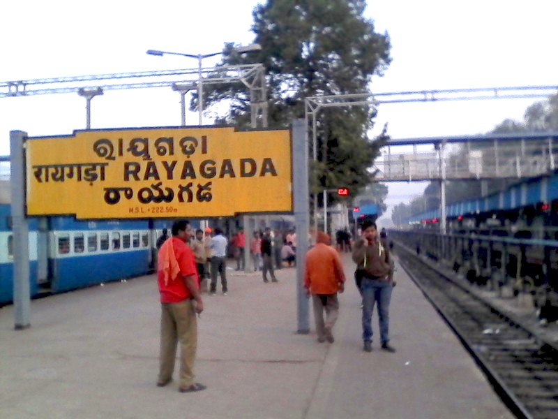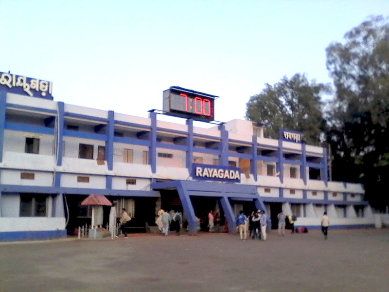 Станция Rayagada. На первом пути — поезд сообщением Yashwantpur — Hatia. Время 7:45.