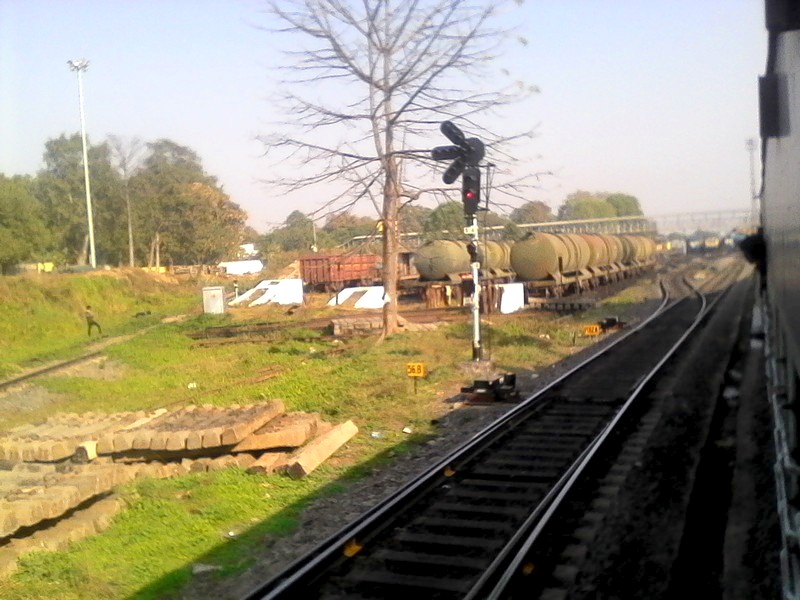 Пересечение с узкоколейной железной дорогой в Райпуре. Вид в южном направлении. Время 10:43.