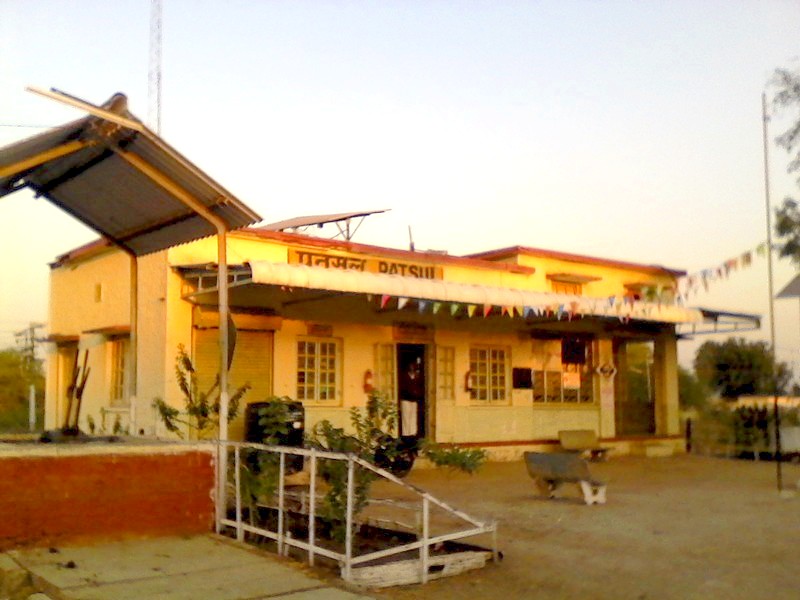 Станция Patsul. Прибывает встречный поезд маршрута Mhow — Akola. Время 7:57.