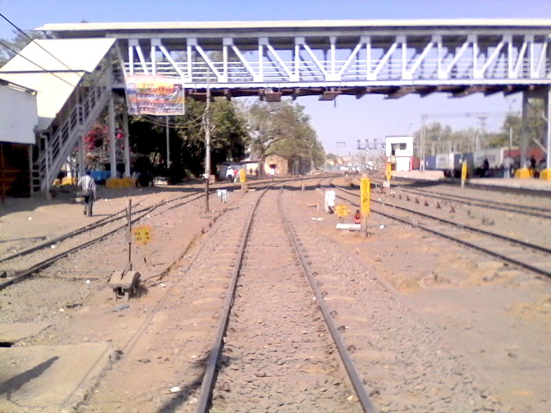 Станция Khandwa. Вид из города на «узкоколейный» вокзал. Он расположен в стороне от «ширококолейного».
