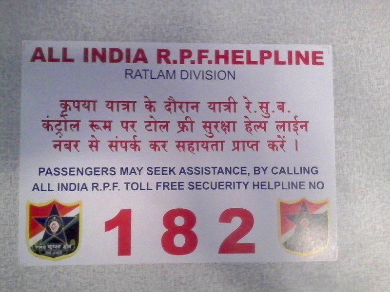 Объявление в вагоне: «всеиндийская телефонная линия помощи железнодорожной полиции».