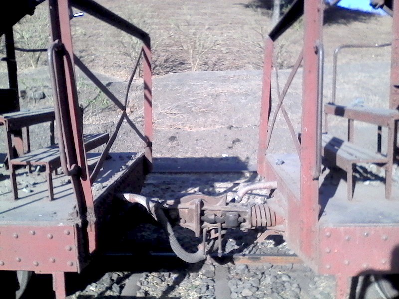 Станция Kalakund. Сцепные устройства вагонов узкой колеи не сходны со сцепными устройствами на широкой колее.