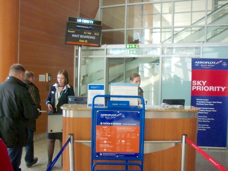 Выход на посадку на рейс в Бишкек. Время 7:40.