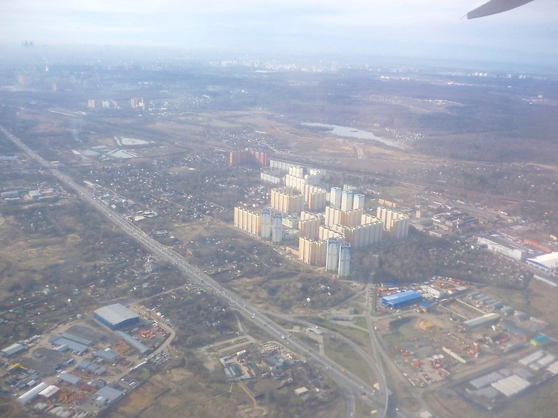 Город Лобня и станция Лобня. Внизу - начальный участок железнодорожной линии