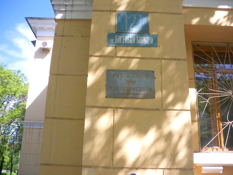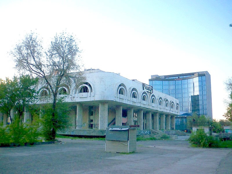 Заброшенное здание в центре Бишкека. Время 19:34.