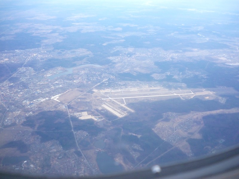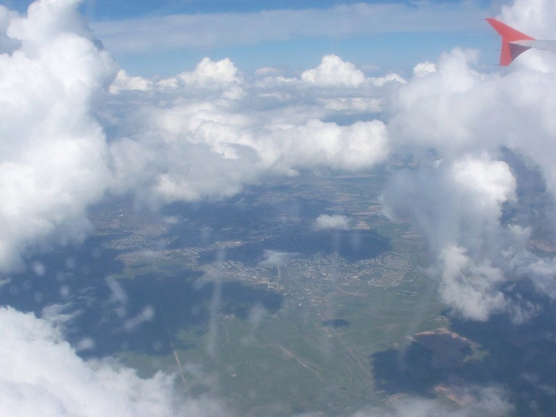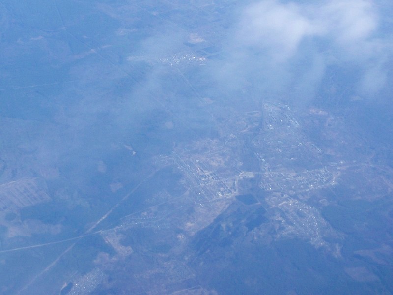 От Владимирской области, приблизительно Уршель, до Димитровграда в Ульяновской области - облачность, потом немного разрыв в облаках. Над Казахстаном большей частью облачно. Перелёт длится ровно 4 часа.