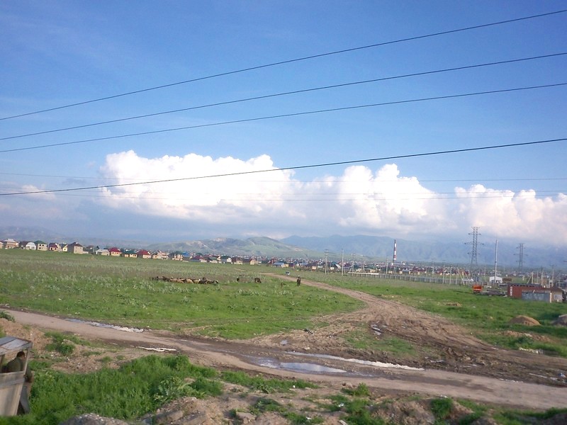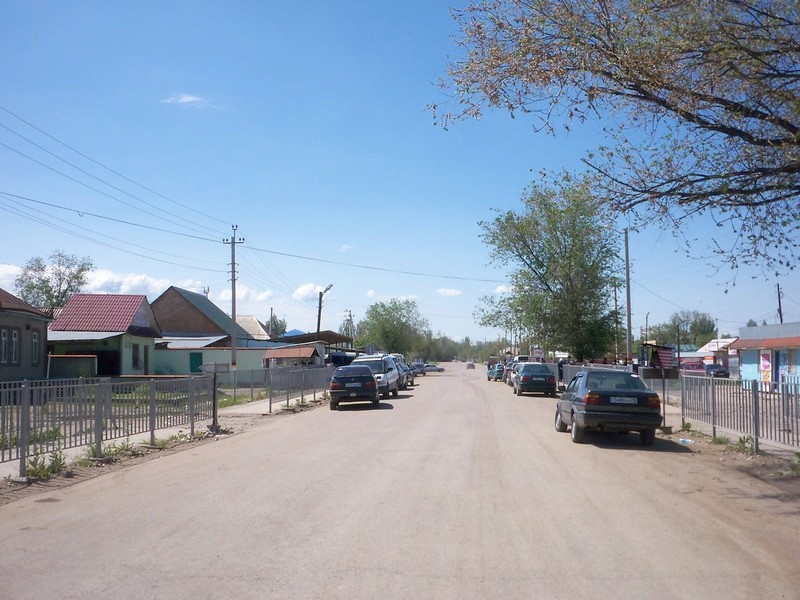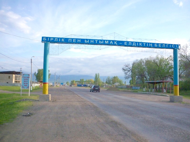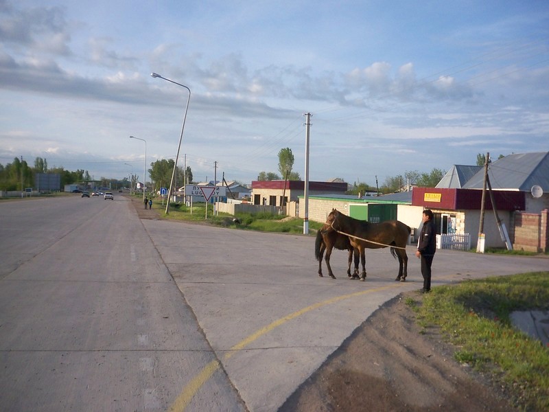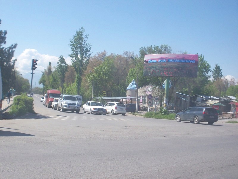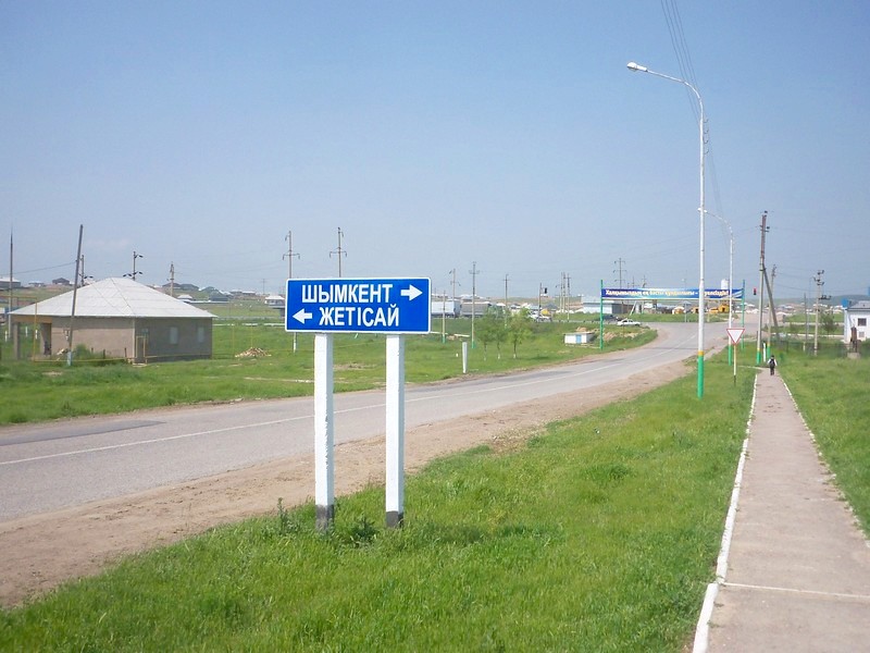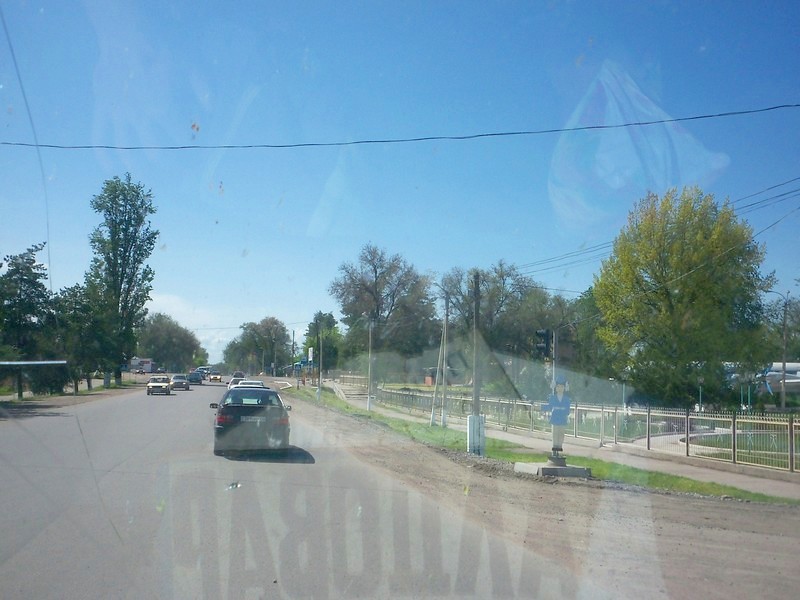 Дорога на Алма-Ату. Въезд в село Георгиевка, к которому националисты прилепили кличку "Кордай". Время 12:17.