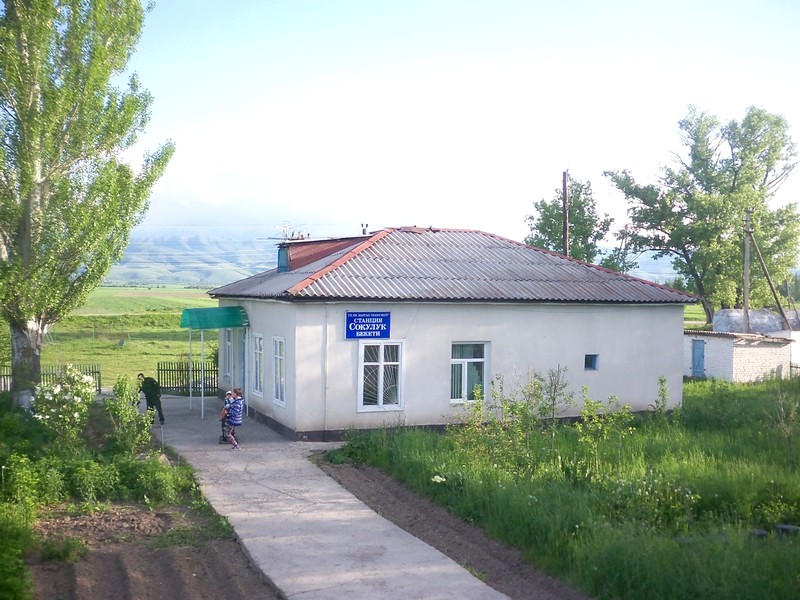 Станция Муньке. Статус аналогичный: территория Казахстана, но Кыргызская железная дорога. Время 17:43.