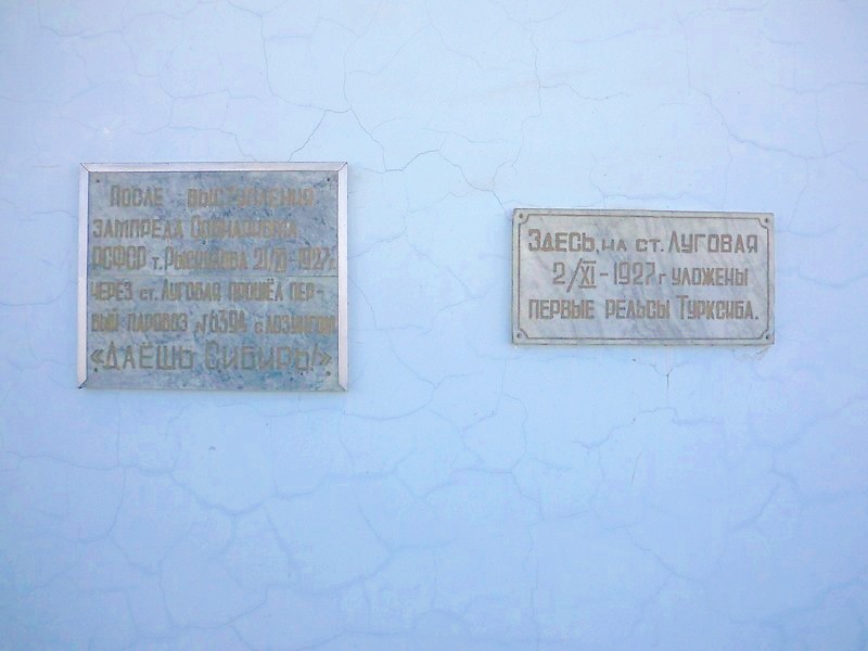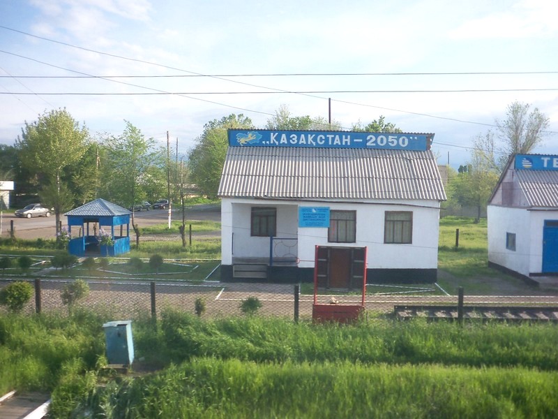 Служебное здание на станции Луговая. Распространённый в прошлом лозунг "Казахстан-2030" сменился на "Казахстан-2050".