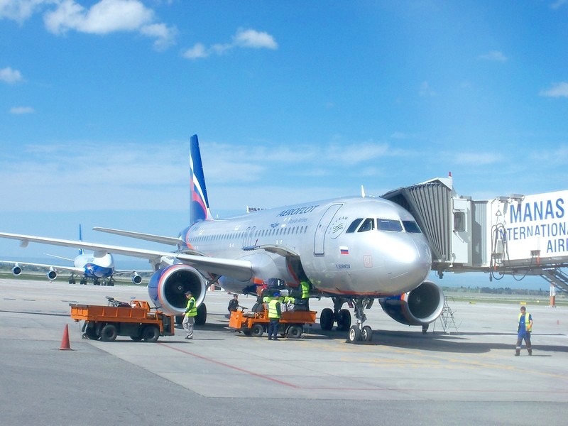 Произведена посадка в аэропорту Бишкек-Манас. Московское время 12:26.