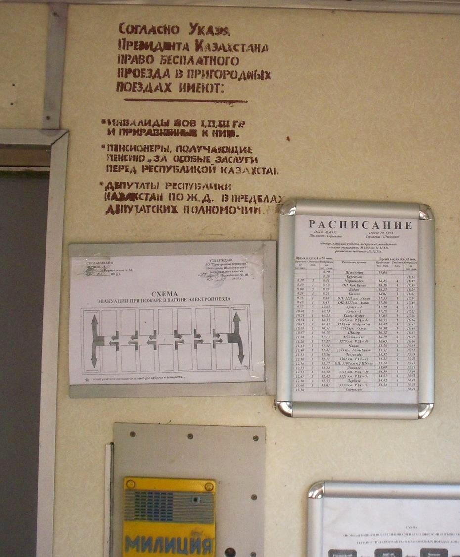 После посадки в электропоезд Чимкент - Сарыагач проводник выдаёт посадочный талон.